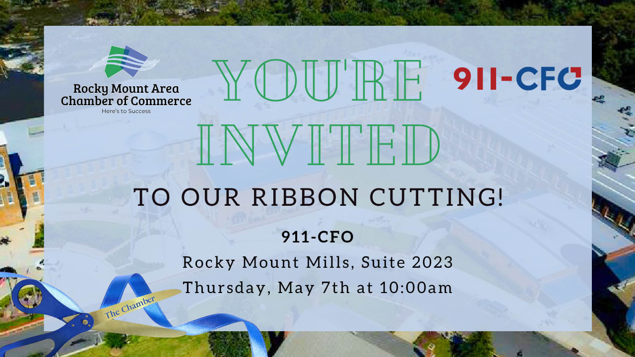 Join us for our ribbon cutting at 911-CFO on Thursday, May 7th at 10:00 AM at the Rocky Mount Mills!